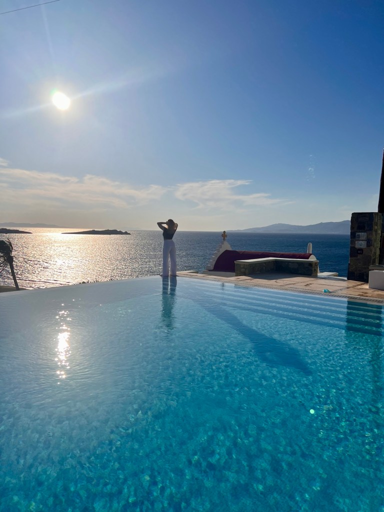 Mykonos. Aka Greece for millionaires and millionaire wannabes. Mostly wannabes. When I visited Mykonos in 2003 it was known as the gay island and the party island. It is still very much those things but now in addition it is exploitatively expensive. This is not by accident. The powers that be want it to be prohibitively exclusive. However, with a little forethought, it is possible to enjoy Mykonos for what it is, a beautiful sun drenched paradise. Mykonos is for swimming and there is no shortage of places to do it. Sometimes when I want to be alone and keep it simple, I go to what I call my “shitty little town beach” as it has no name and no label on the map. It’s not pretty or romantic but it has a concrete pier that sticks out into the most perfect blue green water and it’s where the locals seem to like to hang out. When I want to make a whole day of it, I’ll take the local bus twenty minutes to Elia beach for three euros and walk down to the nude gay cruising area. I’ll find a little place hidden away in the rocks, get naked, eat a sandwich and swim for hours. In old town there is a classic Mykonoan restaurant called “To Maereio” which I am hesitant to tell you about because it’s already hard enough to get a table. I usually get there 15 minutes before they open to make sure I get one of the six tables they have inside. The three people who run the place are family and the food tastes like it was made by someones grandmother because it probably was. Get the special. Mykonos old town has an outdoor movie theater called “Cinemanto” that is so romantic and adorable and basically a secret garden. Last year we all saw Barbie there on opening weekend. On the north of the island there is a tiny restaurant sitting alone on it’s own beach called “Kikis” that I have not yet visited but I am dying to, another thing I am running out of time to do. Night time is party time and the reason most people go to Mykonos. The clubs get wild. “Jackie O’s” is a famous gay bar and will always live in my memory as the place where I first did poppers. “Lola Bar” is my favorite cocktail bar in town. It’s very burlesque and makes excellent drinks and the owner Dimitri loves me. Everyone in Greece is named Dimitri. Mykonos is the only port where we have an overnight and there is something about being free from the confines and rules of the ship at night that really feeds my soul, even if I can’t be on drugs like everyone else.