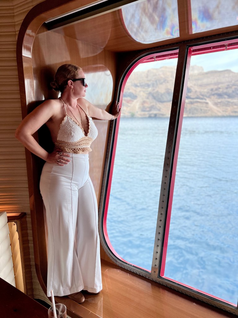 Bodrum. Turkiye. This place is what some (me) might describe as “way too fucking hot”. Bodrum is popular for shopping, specifically for designer fakes. Get all the fake Chanel and Versace and Marc Jacobs and Dior your little heart desires. It’s the kind of place that funnels everyone through the same narrow channel and then harasses them into buying things. You must haggle. This kind of shopping isn’t really my jam so I don’t tend to walk through. The very first time we went to Bodrum I walked deep into town and went to the local market and smelled all the spices and teas and sampled Turkish delight. If you find yourself in town when the market is open I recommend it. My favorite thing to do in Bodrum and the only reason I tend to get off the ship is when a big group of us rent a boat for the day from a company called “Angel Bodrum”. We stock up on snacks and walk to the pier where all the small boats are docked and then sail away. We spend the whole day lounging and jumping in the water and swimming and napping and reading and getting drunk and it is a delight. It’s days like this that make you feel like you have the coolest job in the world that is actually just getting paid to be on vacation. Harry’s favorite thing to do in Bodrum last year was to go to the Turkish hammam and steamed and scrubbed. Last time we were in port I discovered a small local beach right next to the port that has lounge chairs and umbrellas and it will be my new go to whenever we are there.